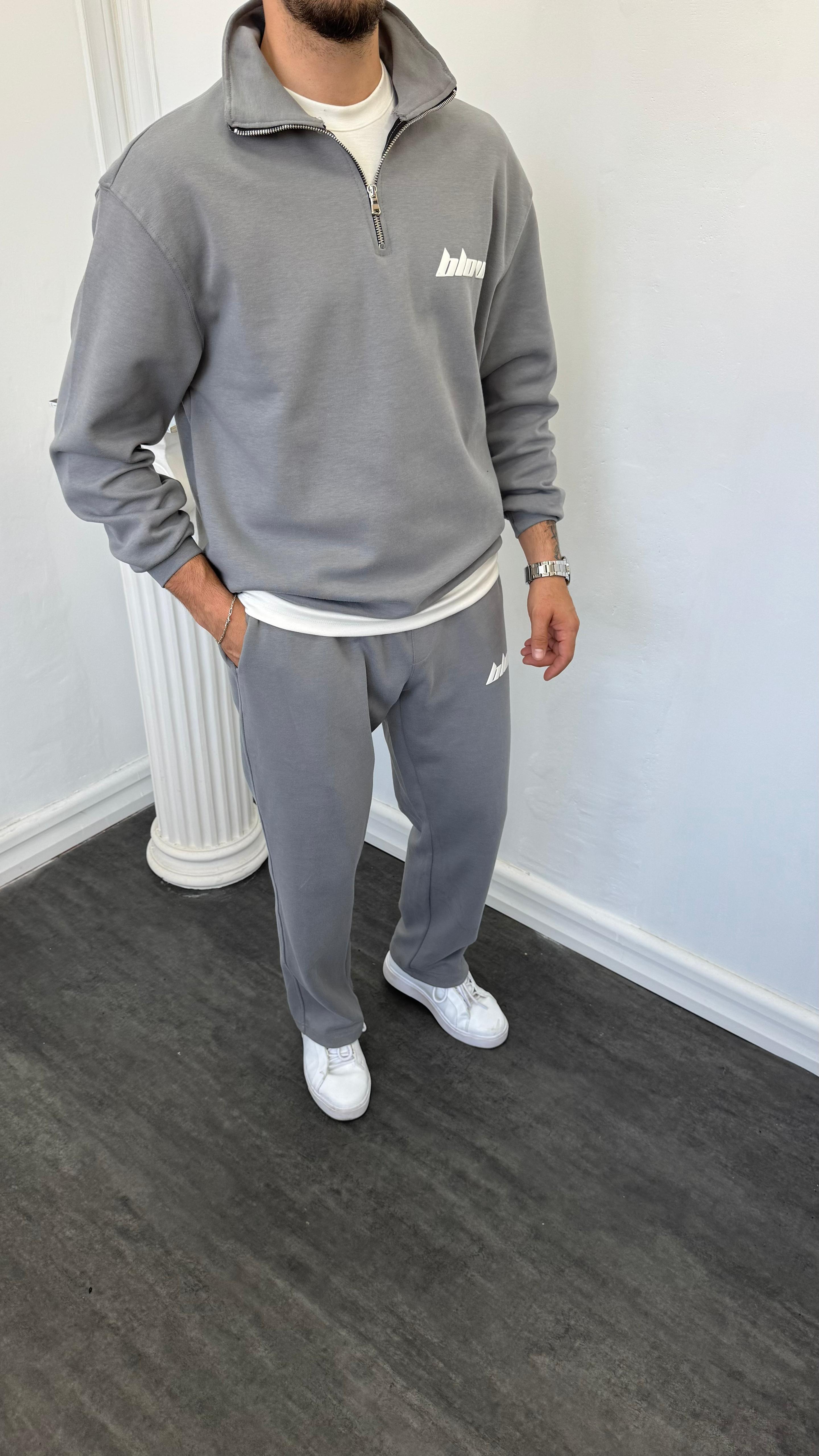 Double Face Yarım Fermuarlı Oversize Takım Gri