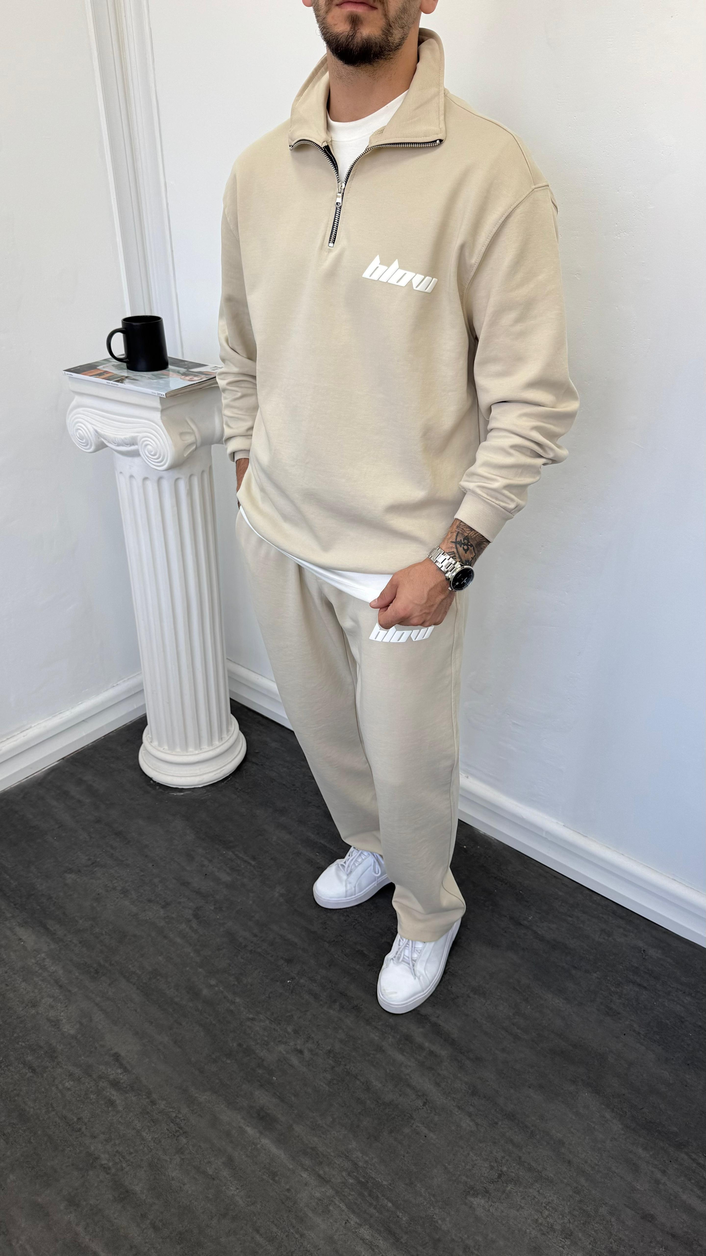 Double Face Yarım Fermuarlı Oversize Takım Krem
