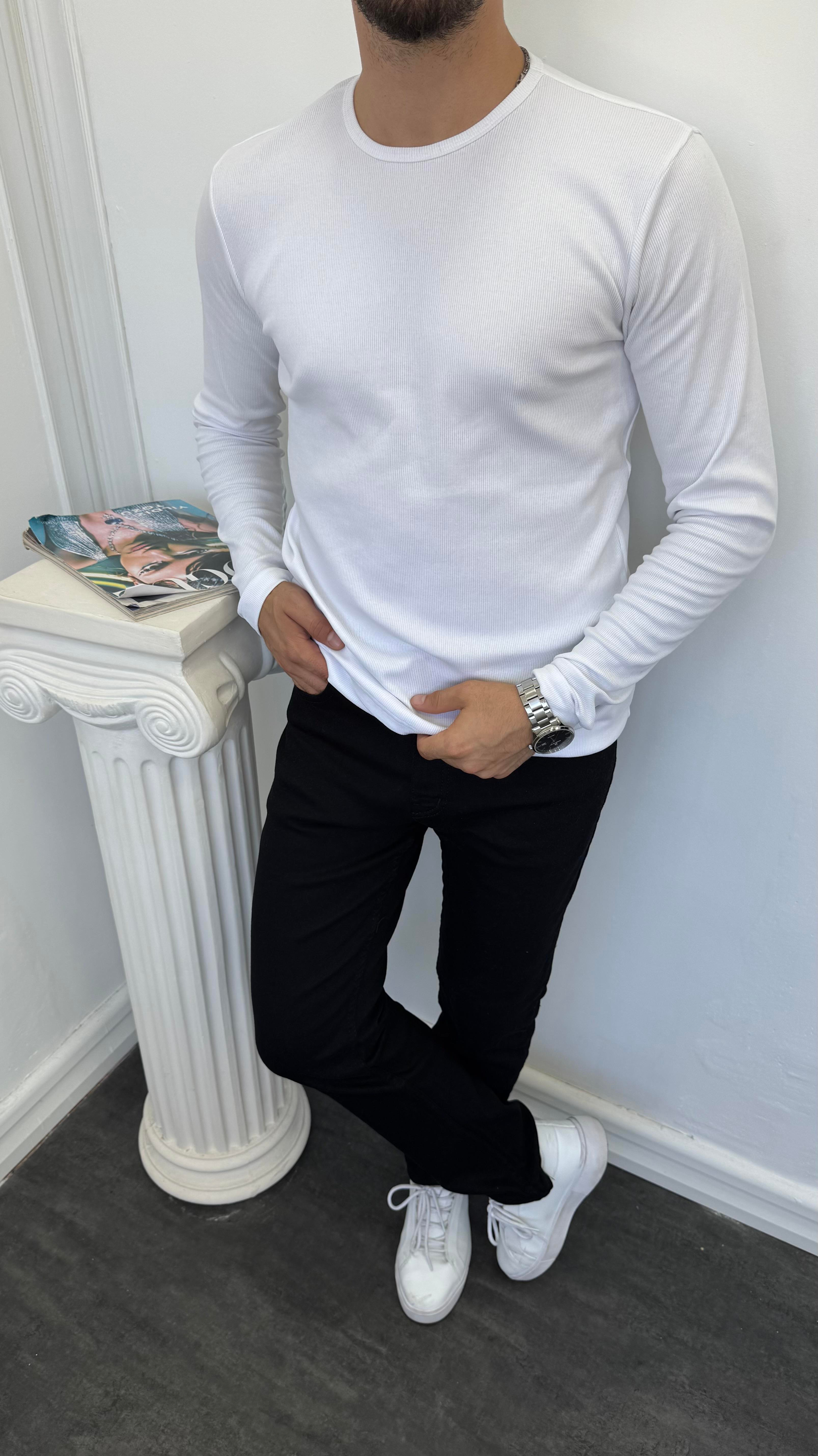 Fitilli Basic Sweatshirt Beyaz