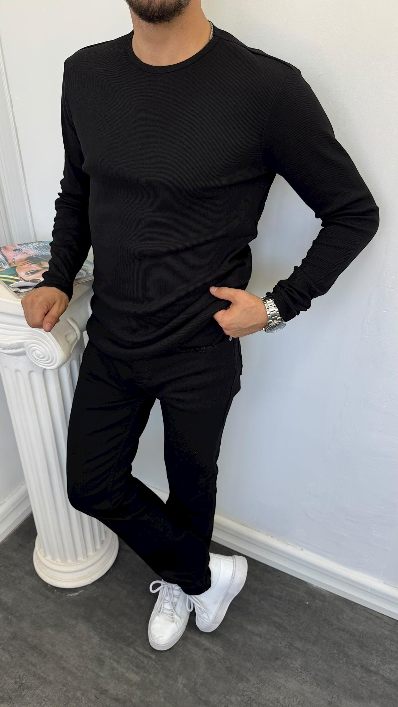 Fitilli Basic Sweatshirt Siyah