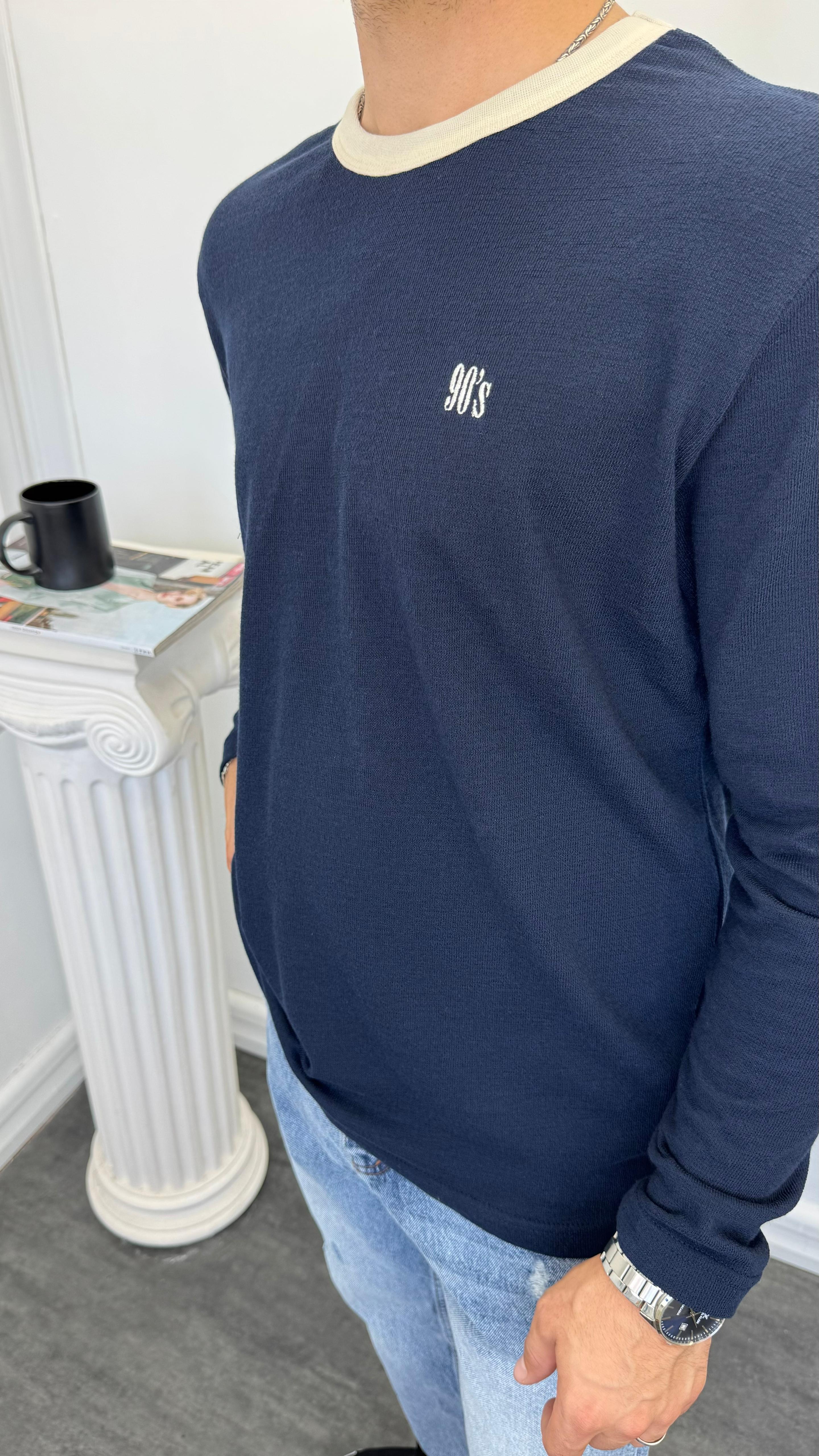 MR 90s Yazılı Bisiklet Yaka Sweatshirt Lacivert