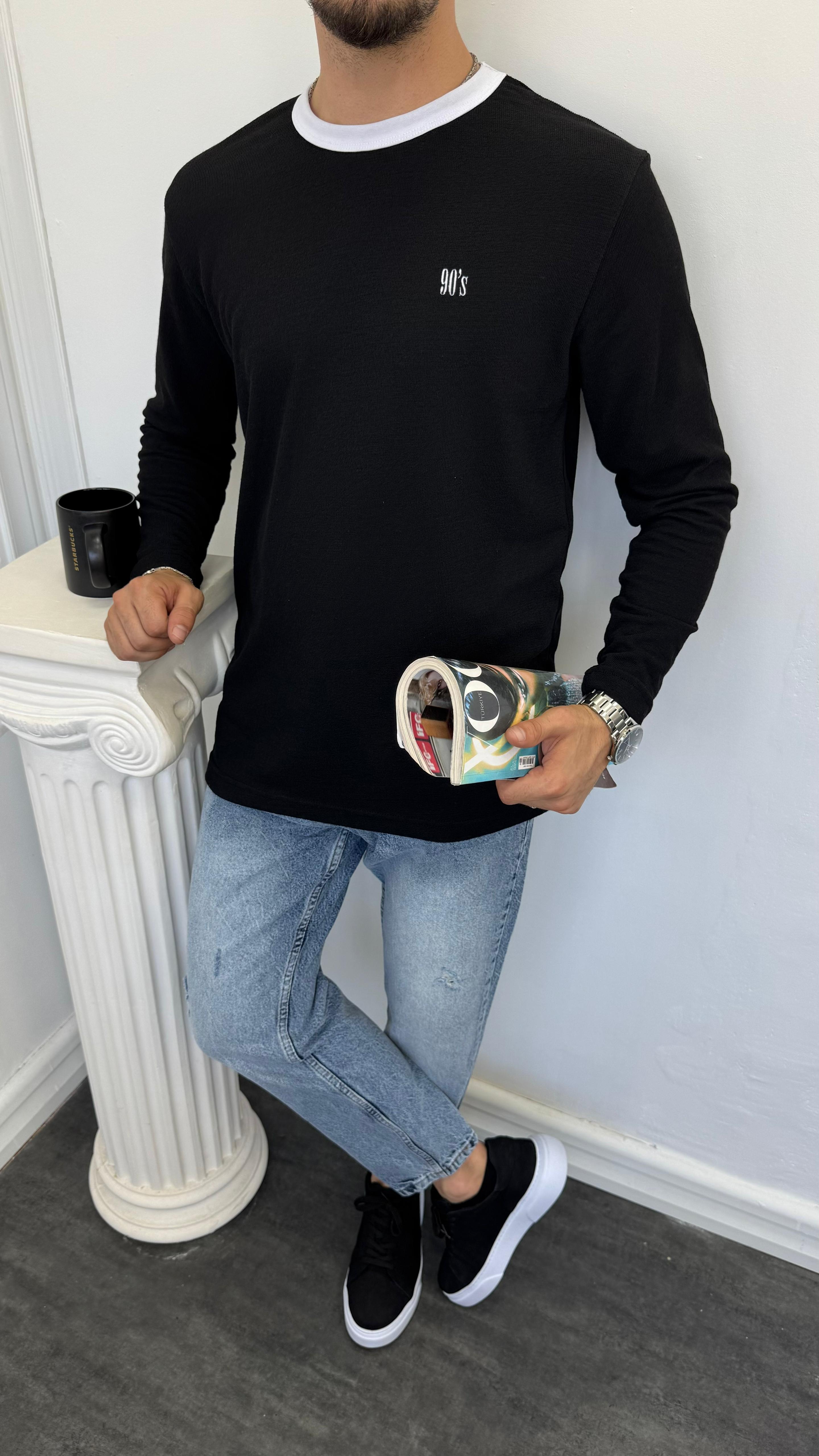 MR 90s Yazılı Bisiklet Yaka Sweatshirt Siyah