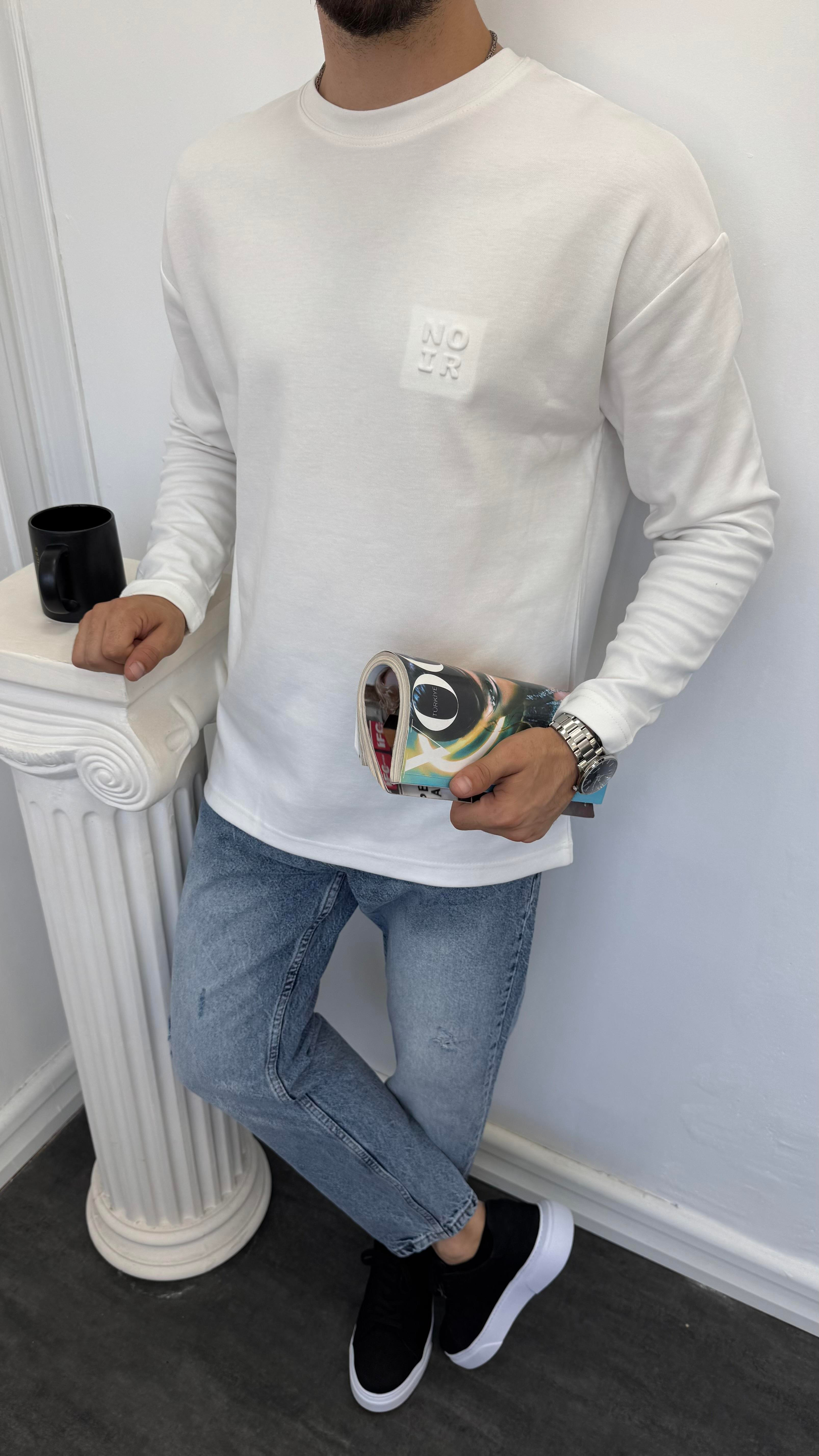 MR Noir Kabartmalı Basic Sweatshirt Beyaz
