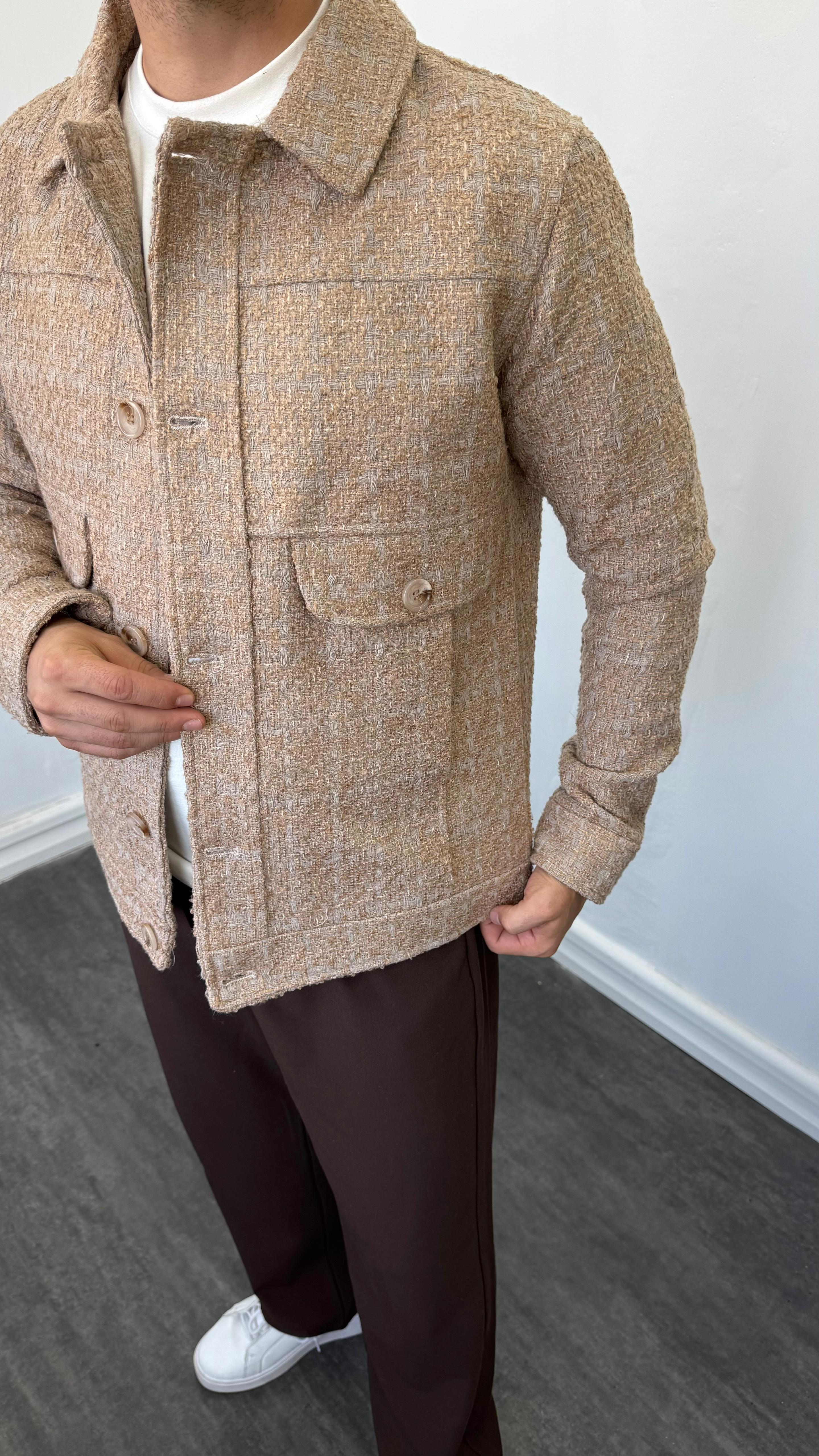 Premium Örme Kaşe Ceket Krem